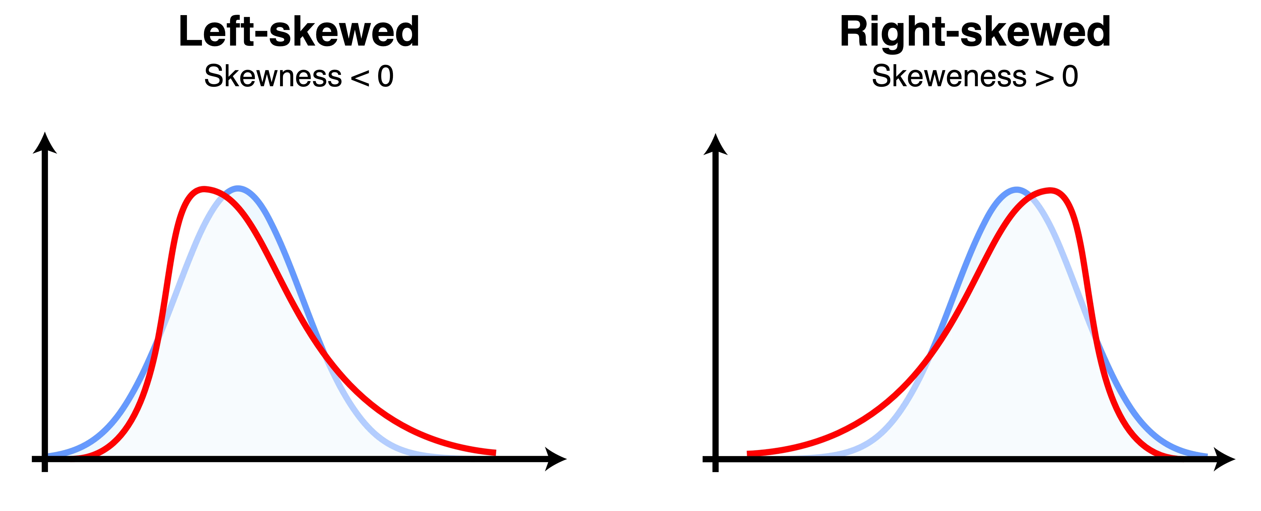 The first way consists in comparing the properties of the distribution called the moments. The first two moments, the mean and the variance, are not useful, since the data is usually standardized to have 0 mean and 1 variance. But the third and fourth moments (skewness and kurtosis, respectively) are frequently used: