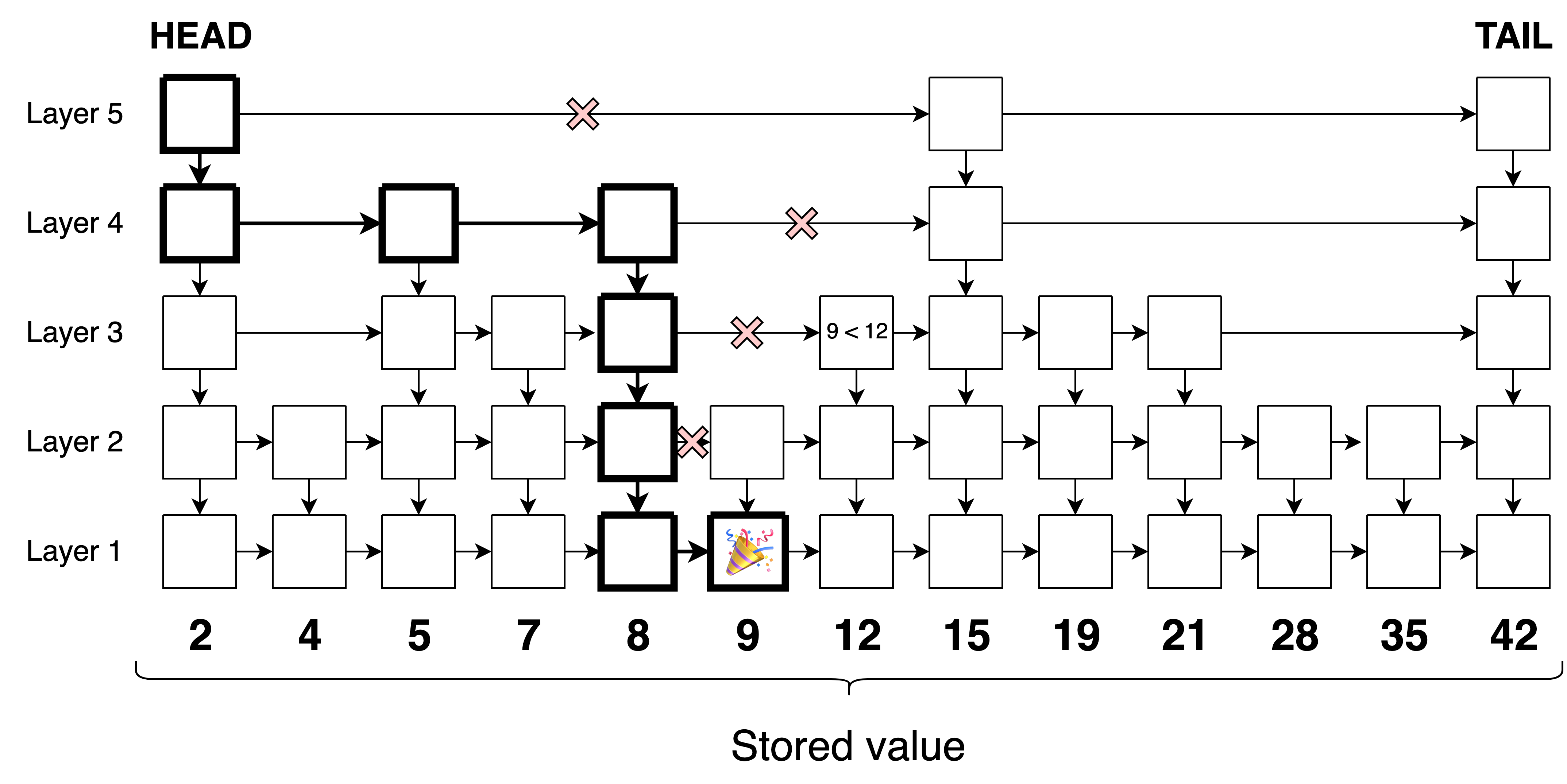 In the past, I described a method to find similar items using local-sensitivity hashing (LSH). The idea is to hash the items in such a way that similar items are likely to fall in the same bucket. This way, we can quickly scan over a corpus and find the items that are similar to our query. However, LSH has high memory requirements and requires careful parameter tuning. Here I will focus on hierarchical navigable small world graphs (HNSW) instead, a more modern method that is the backbone of vector databases. They build on two concepts: skip lists and navigable small world graphs.